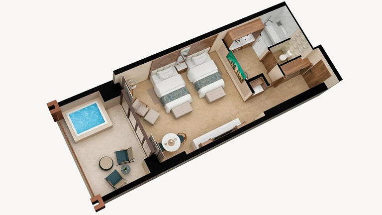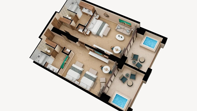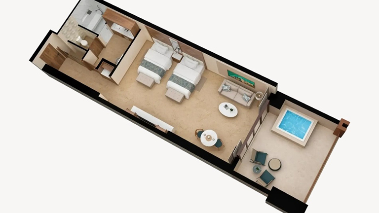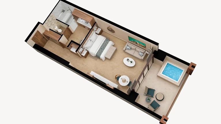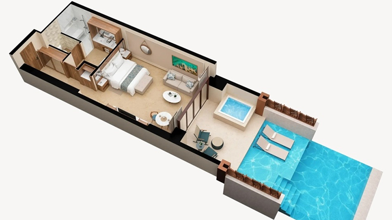 - Direct access from the room terrace to the semi-private pool